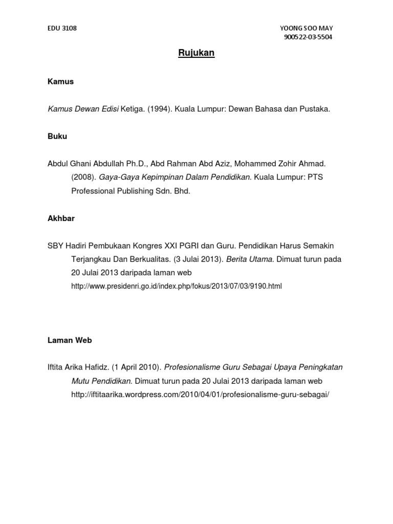Penulisan Rujukan Mengikut Format Apa Contoh 1 Otosection